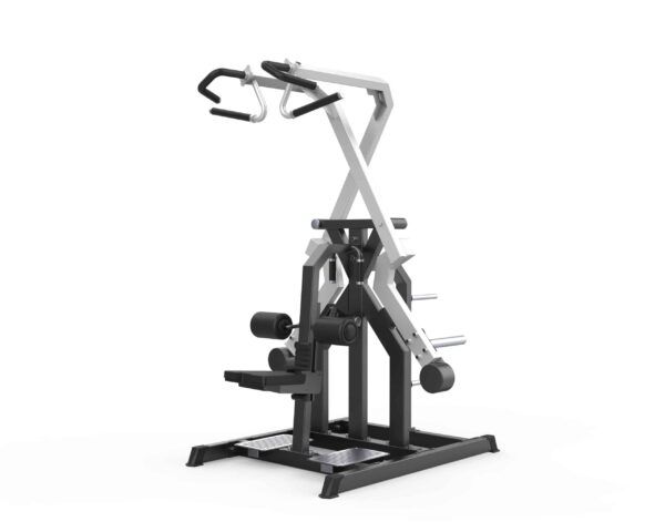 Máquina de entrenamiento de espalda con pesas libres. El movimiento circular especial comienza desde un punto cerrado y termina en un punto abierto para aprovechar al máximo el rango de movimiento de la espalda. Manillar grande con agarres multiángulo para entrenar todos los músculos de la espalda.
